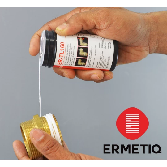 Șnurul etanș pentru filete ERMETIQ ER‑TL160 este o soluție profesională pentru etanșarea îmbinărilor filetate în instalații sanitare, de gaz, apă sau sisteme tehnice care necesită conexiuni fără scurgeri. Acest șnur tip Teflon PTFE este furnizat pe o rolă generoasă de 160 metri, asigurând suficient material pentru multiple lucrări de montaj și întreținere. Utilul